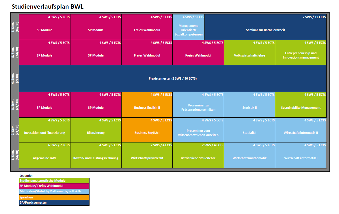 Du studierst 6 Semester (180 ECTS) inkl. eines Praktikums (und optional eines Auslandssemesters).