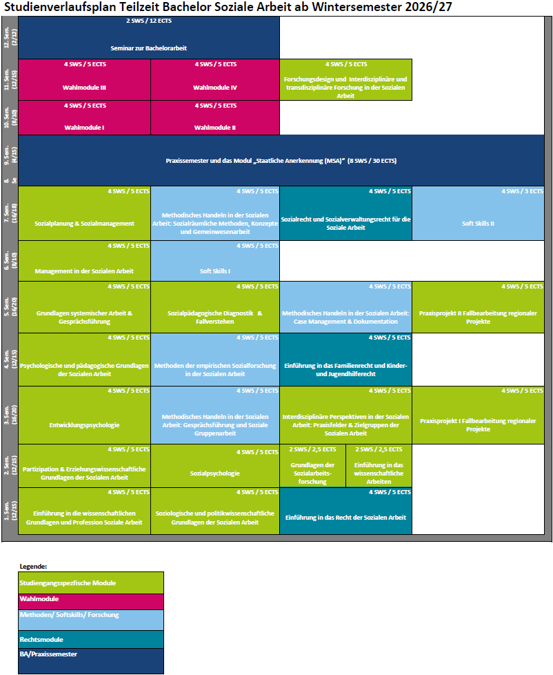 - Den Studienverlaufsplan für die Teilzeitvariante der Sozialen Arbeit findest du bei den Downloads.