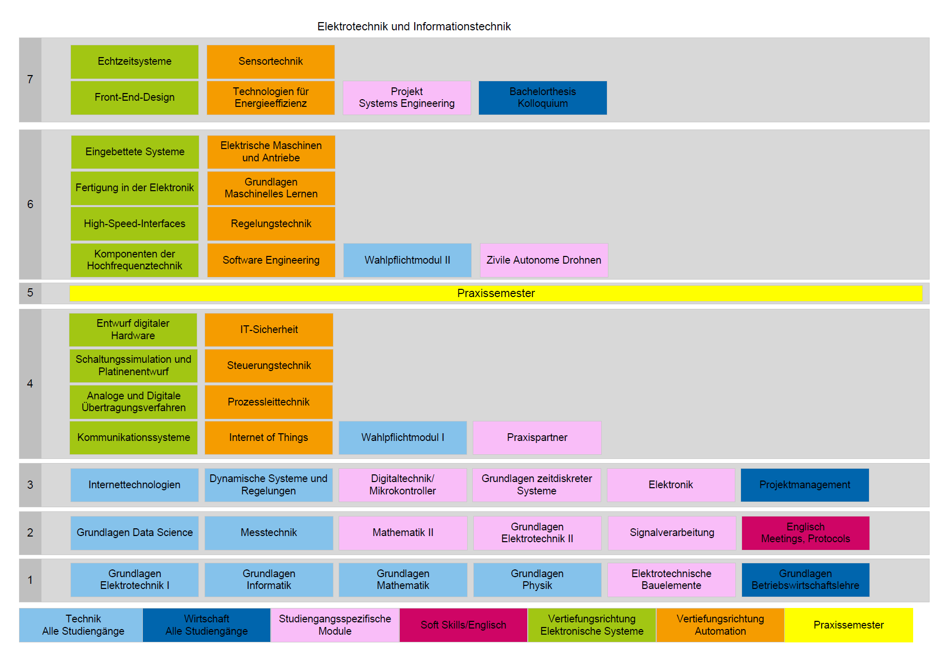 Du studierst 7 Semester (210 ECTS) inkl. eines Praxissemesters.