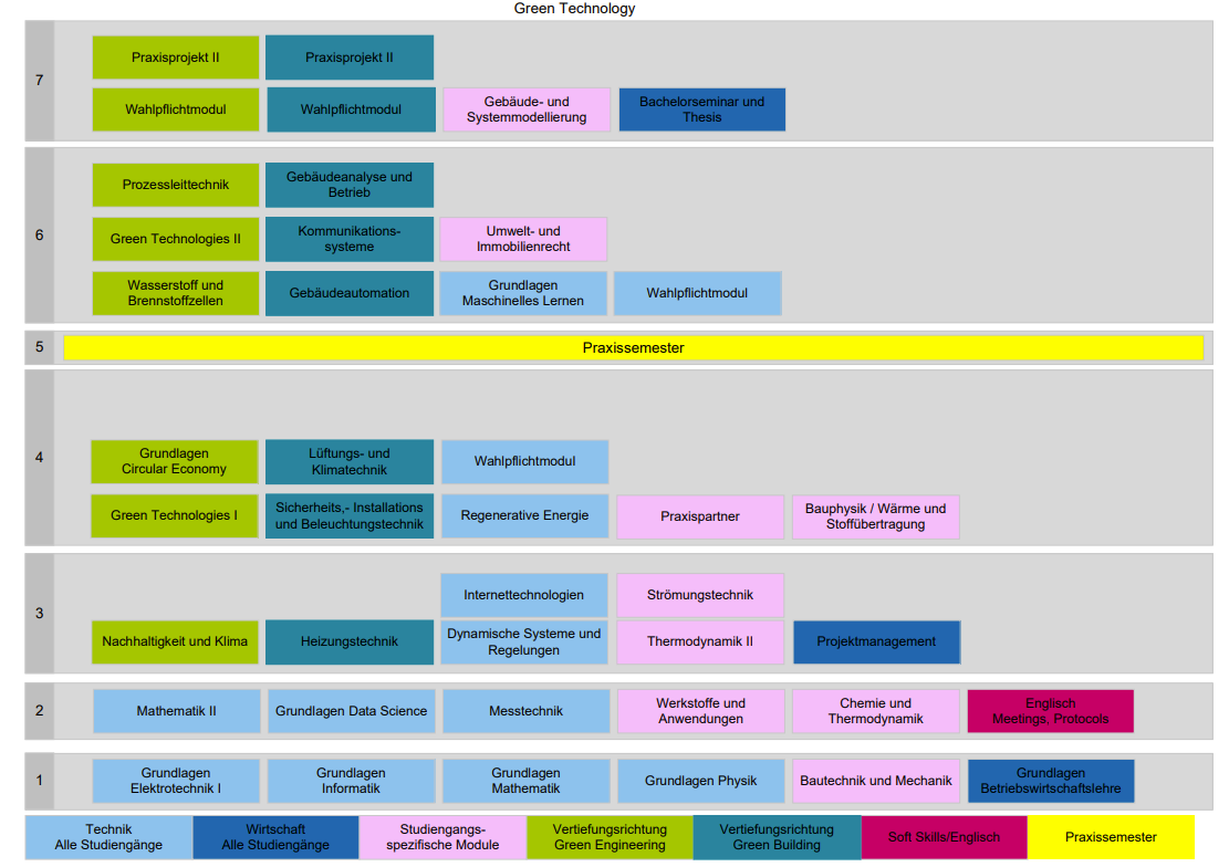 Du studierst 7 Semester (210 ECTS) inkl. eines Praxissemesters.