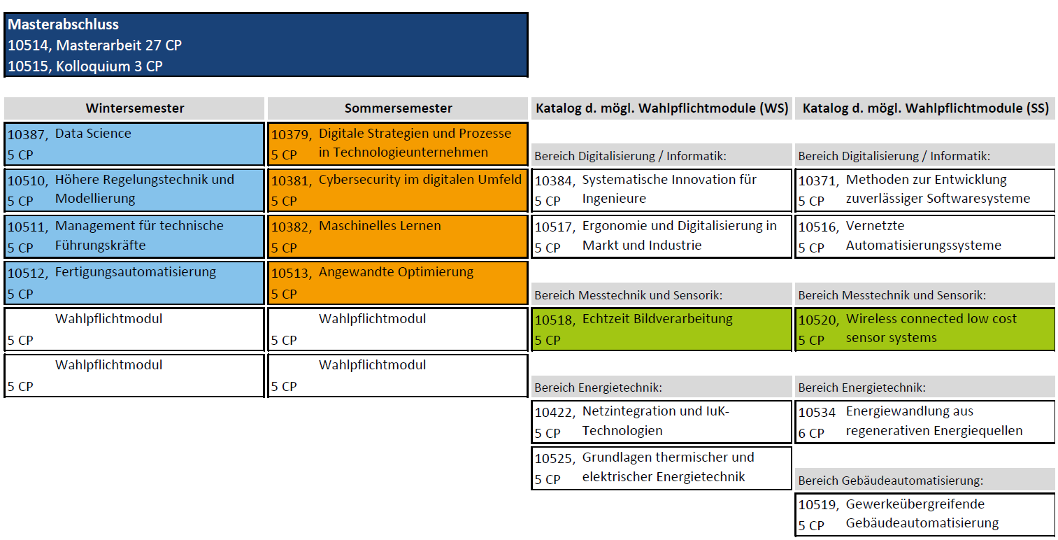 Dabei kann aus den Bereichen Sensorik und Digitalisierung/Informatik, sowie Energietechnik und Gebäudeautomatisierung gewählt werden.